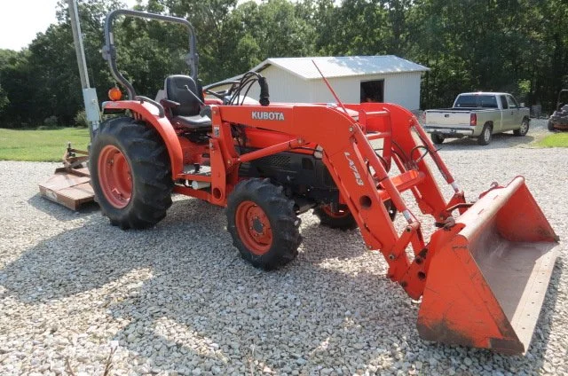 TRACTORS; Kubota L3830 diesel tractor-298 hours-hydrostatic transmission-industrial tires-tilt steering-front wheel assist-comes with LA723 QT loader-one owner, Kubota L3830 diesel tractor-1196 hours-shuttle shift-tilt steering-front wheel assist-1 set outlets-Ag tires-comes with LA723 QT loader-bucket, (4) 50 LB Kubota front suitcase weights, TRUCK; 2008 Toyota Tacoma-crew cab-51,000 miles-leather seats-bed cover-6’ bed, very clean, TRAILER; bumper hitch trailer-6.5’x12’ with drop ramp,