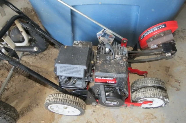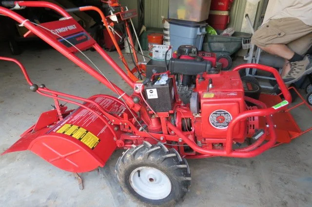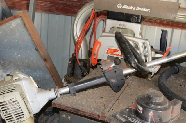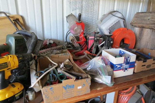 Troy Bilt rear tine Horse tiller, DR All Terrain mower-10.5 HP, DR Power Wagon motorized hauler, Stihl MS250 chainsaw, 12’ Stihl chainsaw, Husqvarna 141 chain saw, Stihl 029 chainsaw, 8 HP 26 ton log splitter, wood racks, Yard Machine 3.5 HP edger, chain saw blade sharpener, battery chargers, car ramps, jack stands, tire inflator, hedge trimmer, leaf blower, shovels, rakes, axe, pitch fork, sledge, post hole digger, oil filters, auto fluids, gas cans, step ladders, extension ladders, come-a-long, fence stretcher, wheelbarrows, rolling hose reel, water hoses, yard carts, hand tools, chemicals, hand seeder,