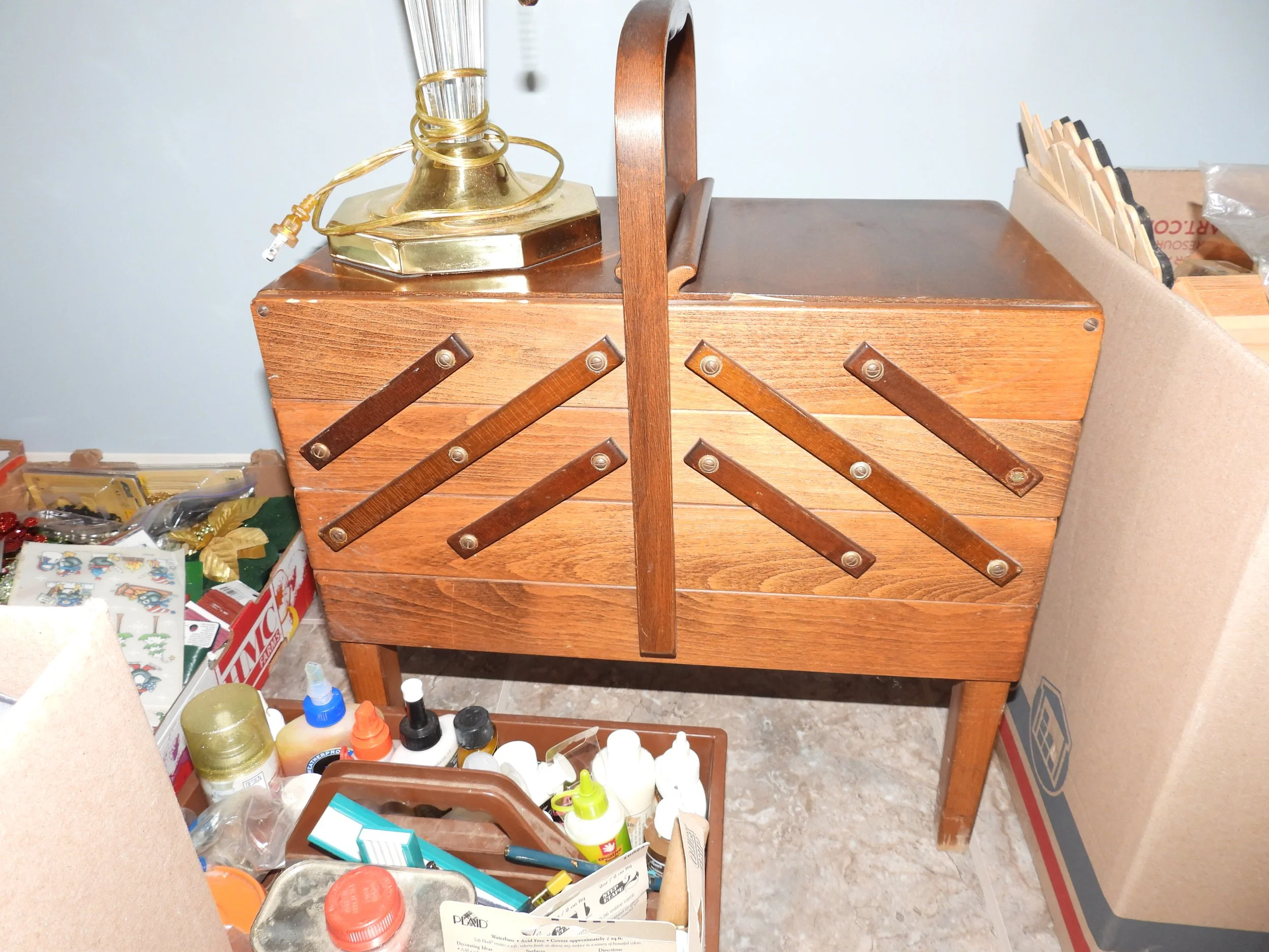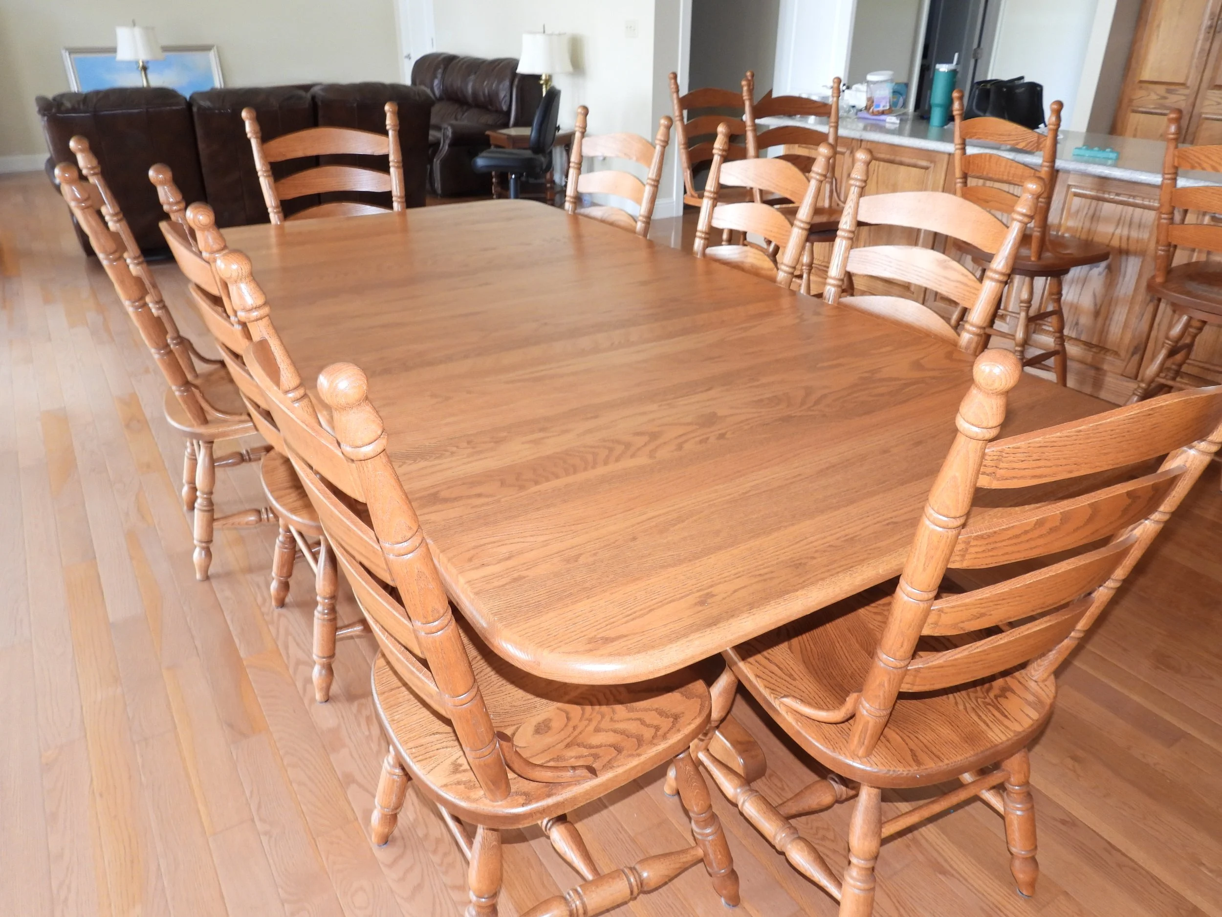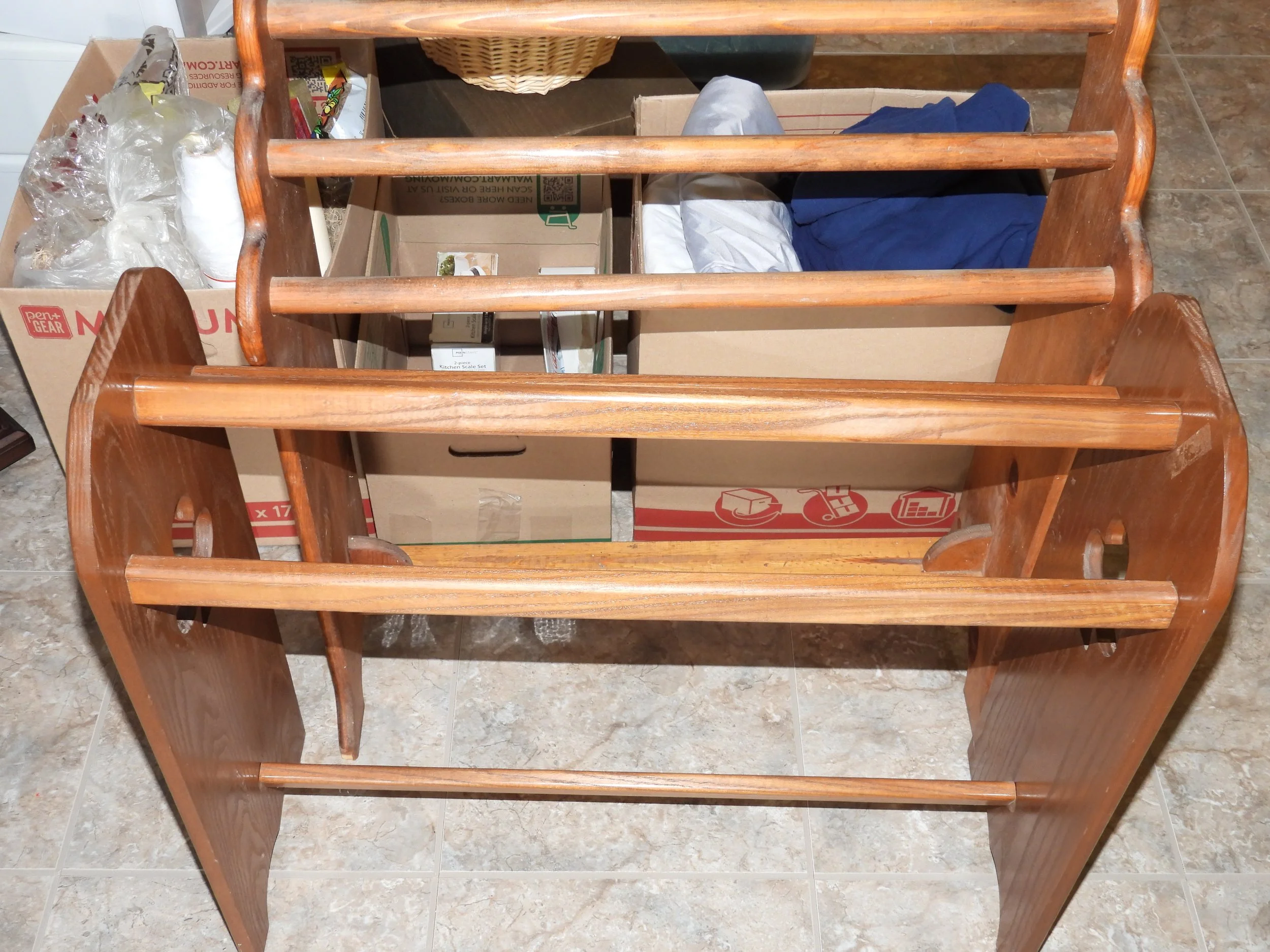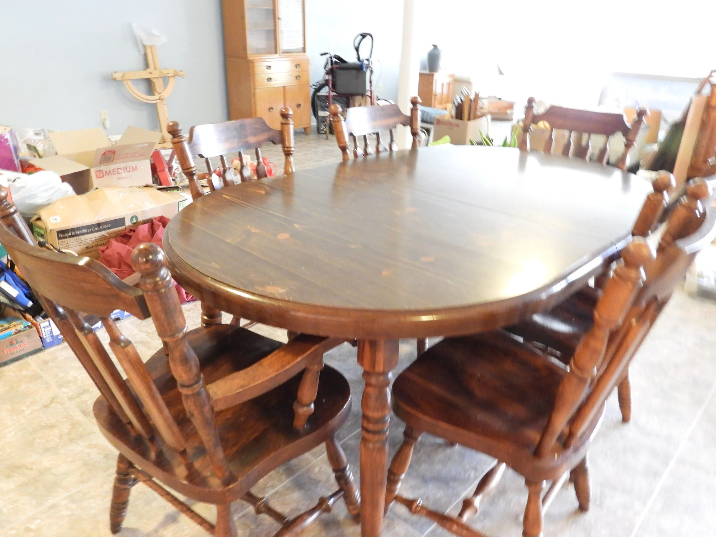 OAK FURNITURE; Amish oak dining table-2 leafs-internal storage-11’x14’-8 ladder back chairs, oak counter stools, oak entertainment center, 4 piece coffee-sofa table-end tables set-marble tops, Mistlers oak queen size bed with underbed drawer storage, 2 oak night stands, gentleman dressing chair, nice old wash stand, accent table, small floor curio cabinet, vintage telephone bench, oval dining table, china cabinet-serving buffet set, framed 7’x3’ wall mirror, jewelry armoire, set 3 easy chairs-ottoman, leather sofas with end recliners, lot framed art, table lamps, floor lamp, Fisher stereo rack system-floor speakers, file cabinet, desk, sofa, luggage, folding card table, 6’ folding tables, chairs, rockers, drafting desk, clothes steamer, decorations, Christmas decorations-wreath holders, embroidered linens, tablecloths, heaters, TV trays, anywhere bed, framed artwork, sofa-love seat, oak lamp table, vacuum, walkers, wheel chair, CRAFTS; lot crafting supplies- Classic Quilt Frame-adjustable sizes, lot blocks-fabric, craft boxes, ribbons, thread, patterns, batting, wooden craft pieces, glue, stickers, stencils, woodburning, sewing cabinet, bedding, pillows, KITCHEN; food chopper, hand mixer, SS pot, sifters, funnels, copper pans, bread pans, pie pans, baking pans, Pampered Chef bowls, stoneware dish set, cannisters, spice bottles, scale, knife sharpener, cookbooks, water pitcher-glasses, stemware, mugs, tea pots, utensils, colored glass pieces, punch bowl, drink dispensers, PYREX, bowls-sets, YARD; rods-reels, tackle box, live baskets, plastic Jon boat, lot life jackets, pond chemicals, (2) nice patio table-chair sets-glider bench, weber gas grills, tomato cages, chain link dog pen, dog house, training collar, pet feeders-supplies, game camera, B&D 6’ tall storage cabinet, plastic storage bench, yard benches, trash cans, picnic table, plastic shelving, coolers, cooler jugs, yard umbrellas, camp stove, lawn chairs, planters, plant stands, Port-A-Potty unit,