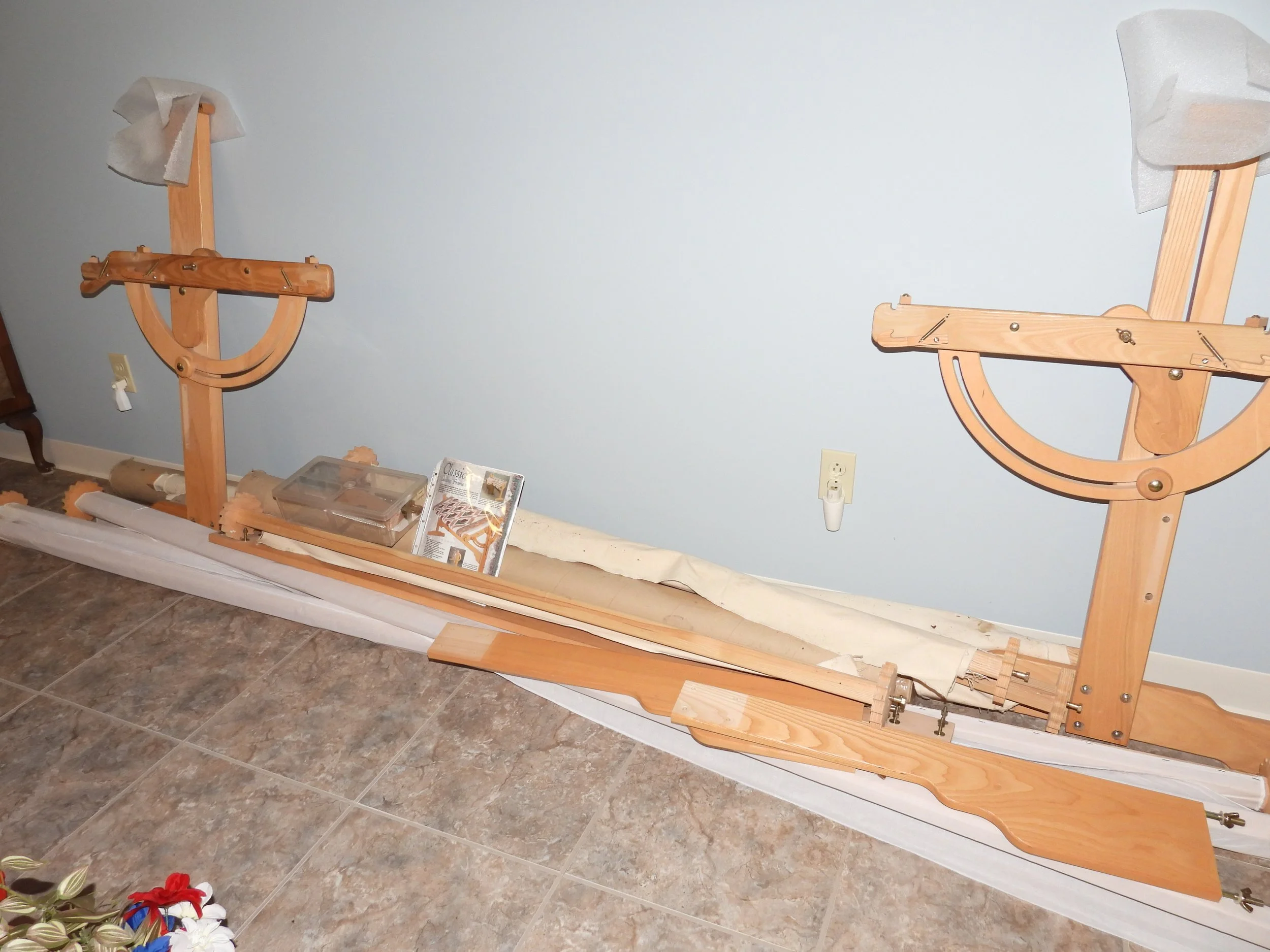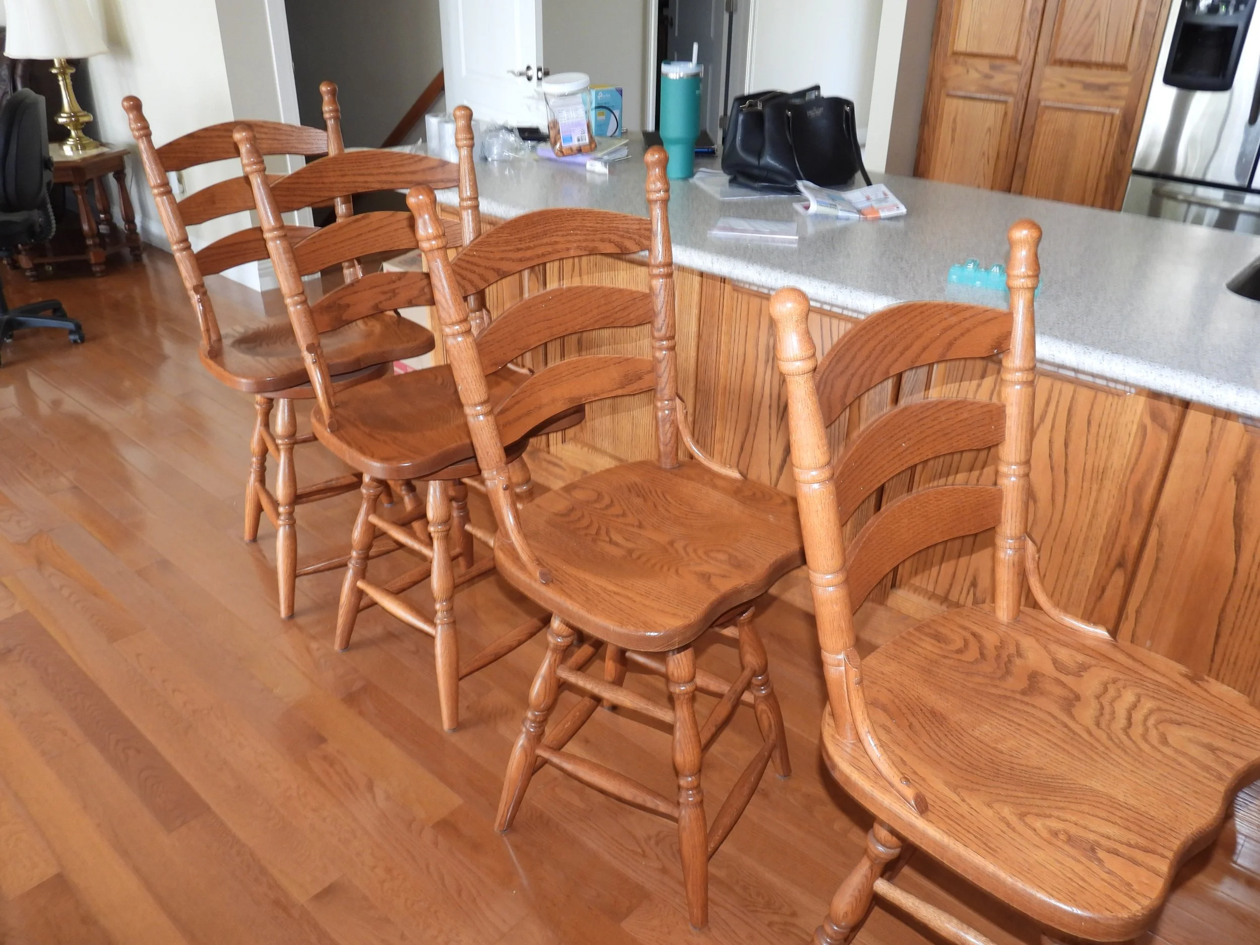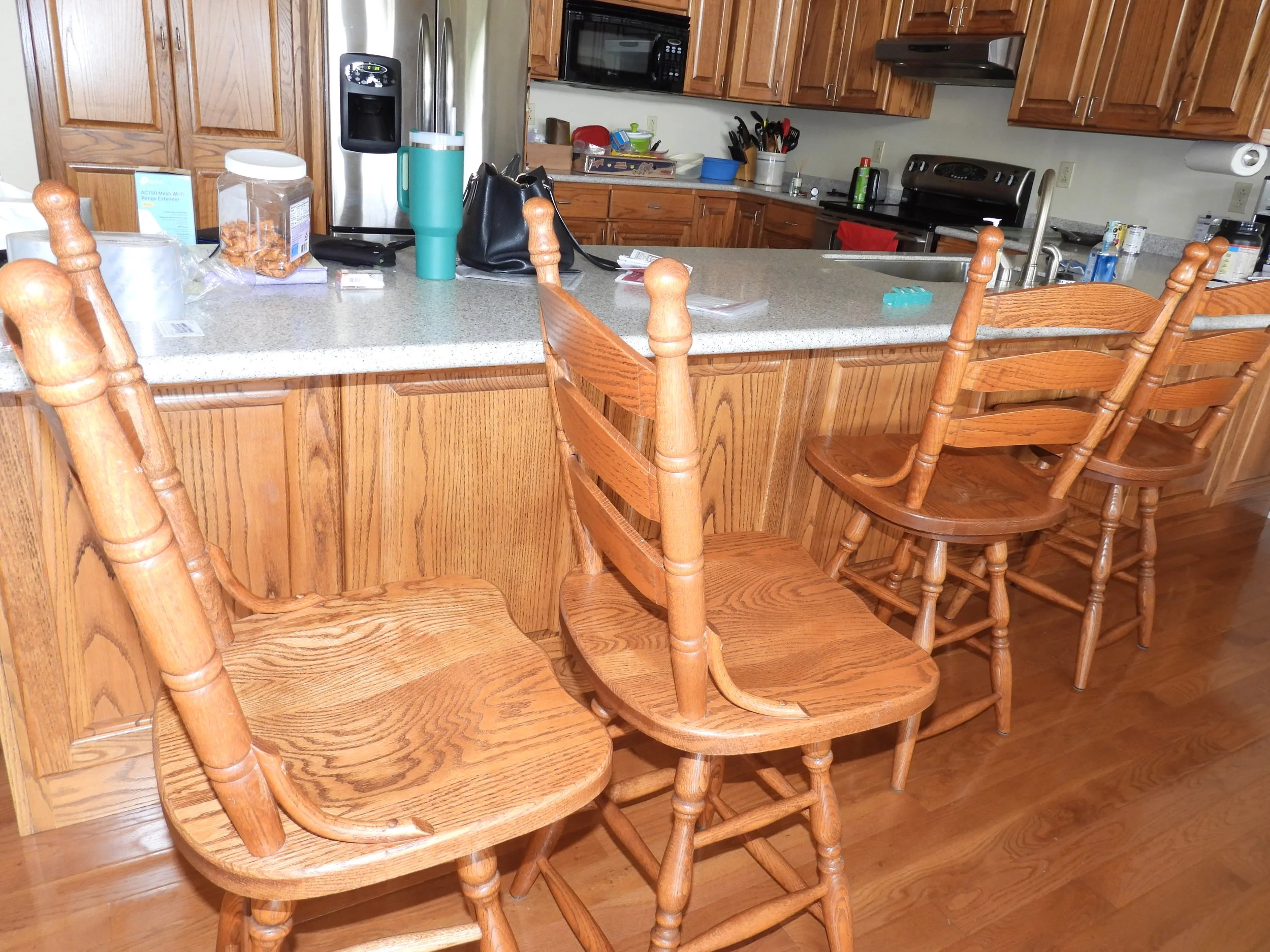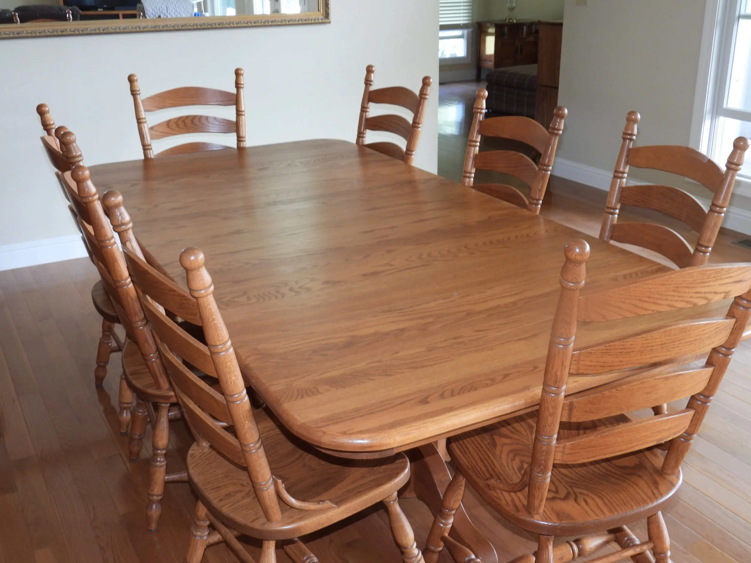 OAK FURNITURE; Amish oak dining table-2 leafs-internal storage-11’x14’-8 ladder back chairs, oak counter stools, oak entertainment center, 4 piece coffee-sofa table-end tables set-marble tops, Mistlers oak queen size bed with underbed drawer storage, 2 oak night stands, gentleman dressing chair, nice old wash stand, accent table, small floor curio cabinet, vintage telephone bench, oval dining table, china cabinet-serving buffet set, framed 7’x3’ wall mirror, jewelry armoire, set 3 easy chairs-ottoman, leather sofas with end recliners, lot framed art, table lamps, floor lamp, Fisher stereo rack system-floor speakers, file cabinet, desk, sofa, luggage, folding card table, 6’ folding tables, chairs, rockers, drafting desk, clothes steamer, decorations, Christmas decorations-wreath holders, embroidered linens, tablecloths, heaters, TV trays, anywhere bed, framed artwork, sofa-love seat, oak lamp table, vacuum, walkers, wheel chair, CRAFTS; lot crafting supplies- Classic Quilt Frame-adjustable sizes, lot blocks-fabric, craft boxes, ribbons, thread, patterns, batting, wooden craft pieces, glue, stickers, stencils, woodburning, sewing cabinet, bedding, pillows, KITCHEN; food chopper, hand mixer, SS pot, sifters, funnels, copper pans, bread pans, pie pans, baking pans, Pampered Chef bowls, stoneware dish set, cannisters, spice bottles, scale, knife sharpener, cookbooks, water pitcher-glasses, stemware, mugs, tea pots, utensils, colored glass pieces, punch bowl, drink dispensers, PYREX, bowls-sets, YARD; rods-reels, tackle box, live baskets, plastic Jon boat, lot life jackets, pond chemicals, (2) nice patio table-chair sets-glider bench, weber gas grills, tomato cages, chain link dog pen, dog house, training collar, pet feeders-supplies, game camera, B&D 6’ tall storage cabinet, plastic storage bench, yard benches, trash cans, picnic table, plastic shelving, coolers, cooler jugs, yard umbrellas, camp stove, lawn chairs, planters, plant stands, Port-A-Potty unit,