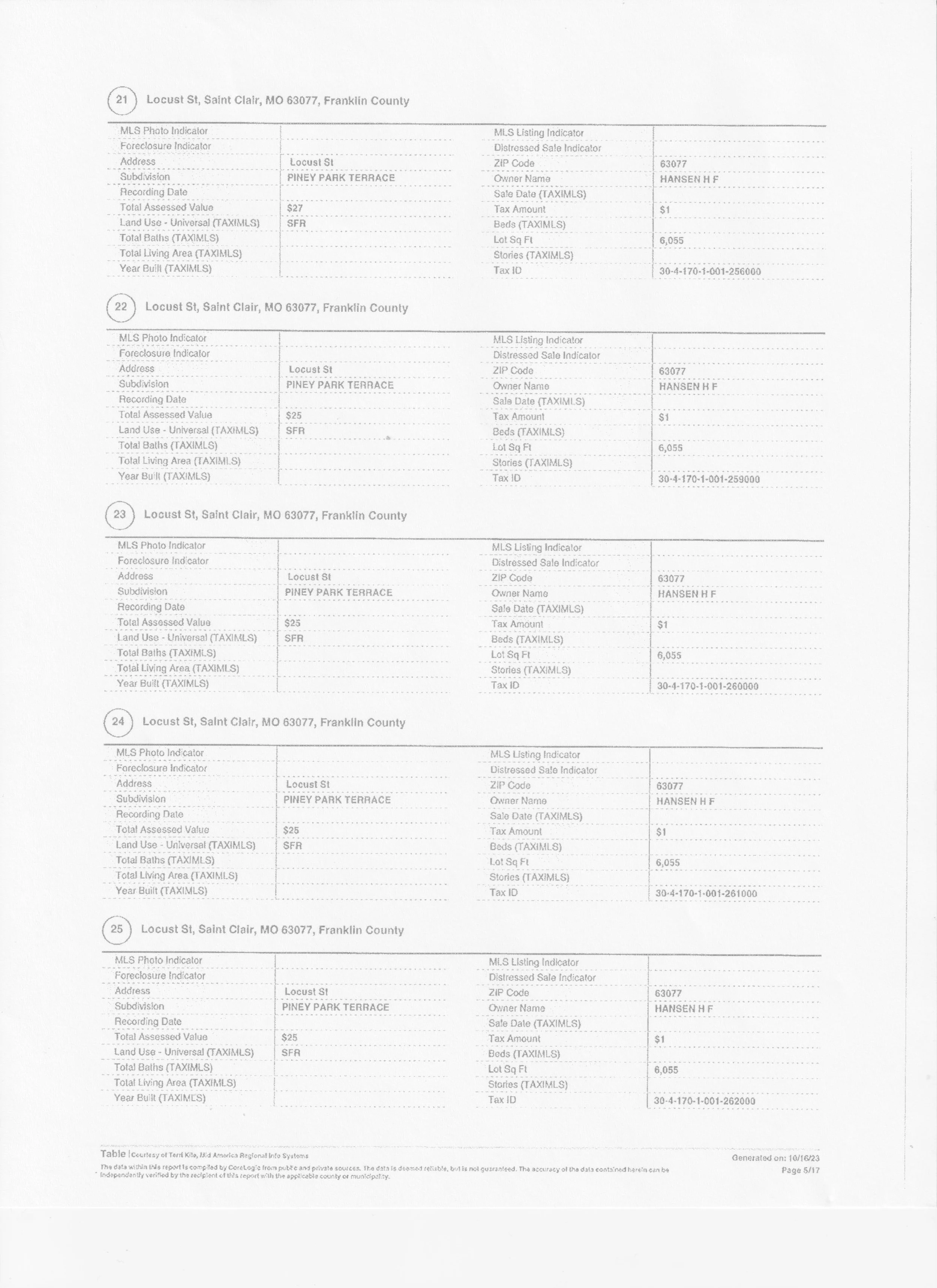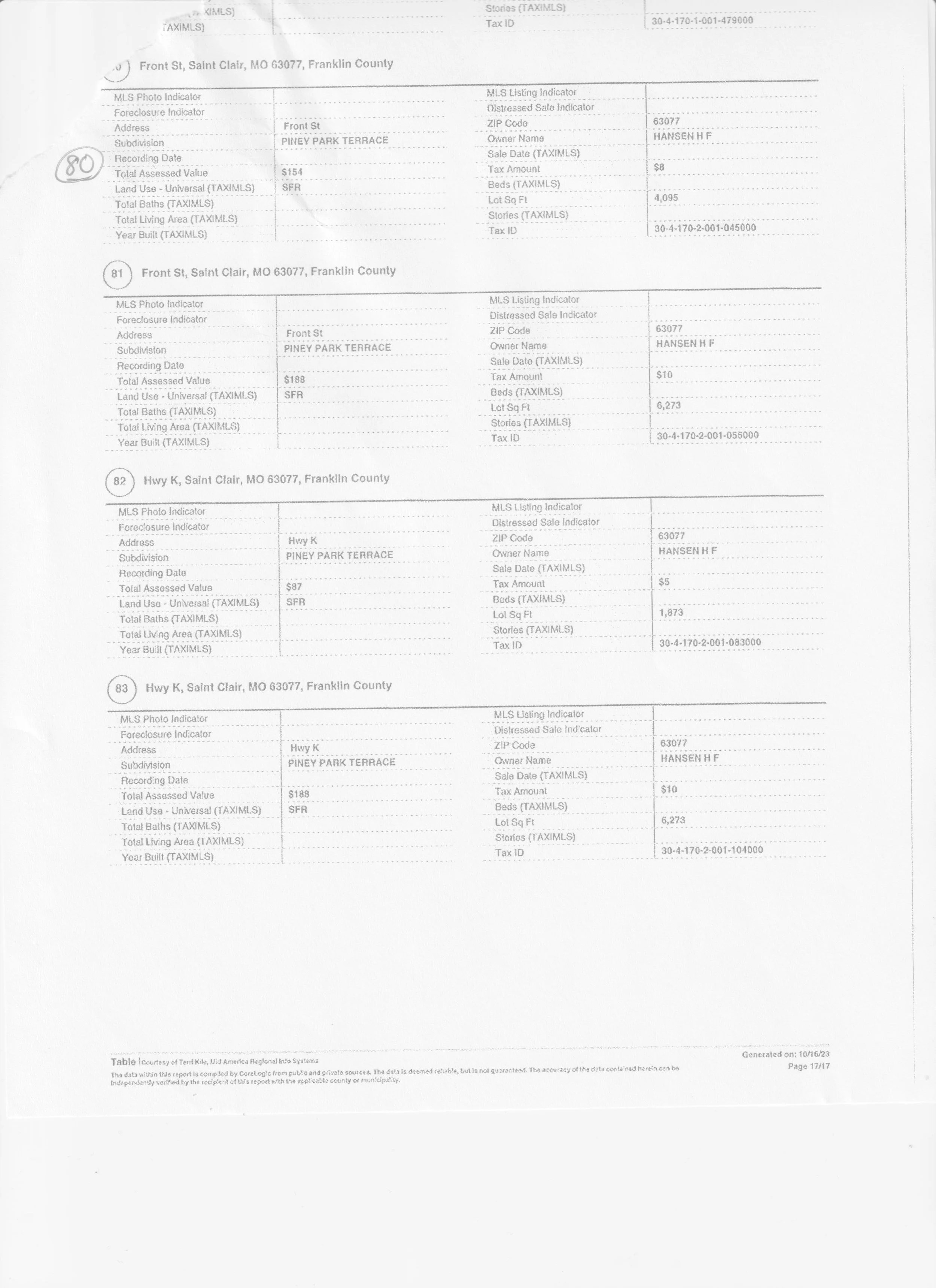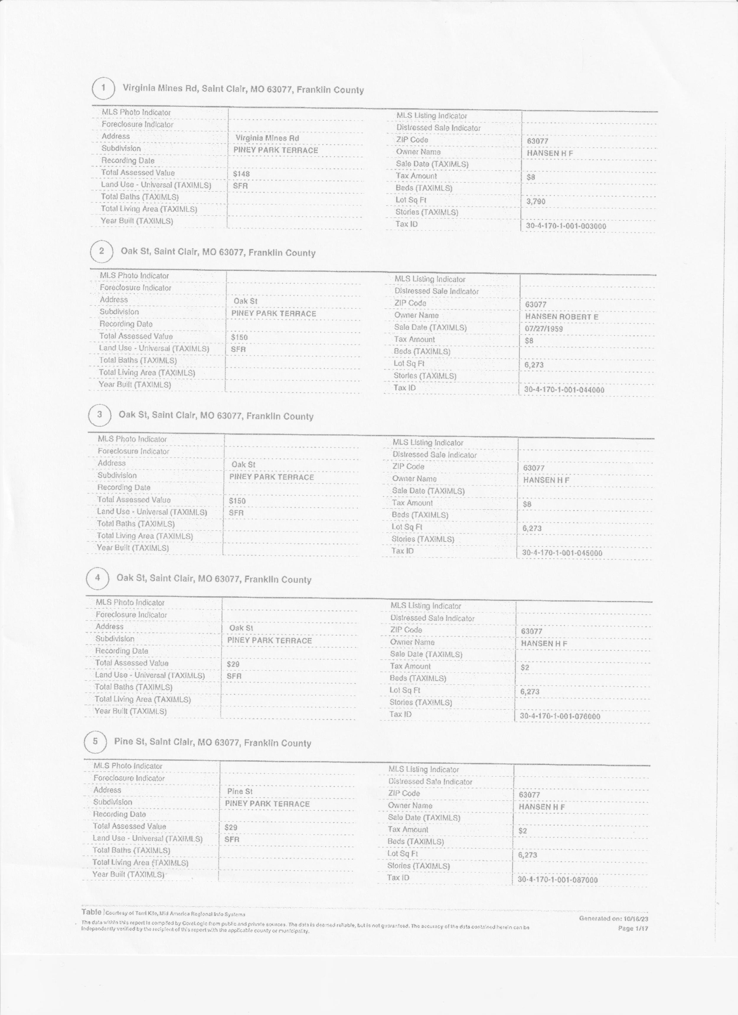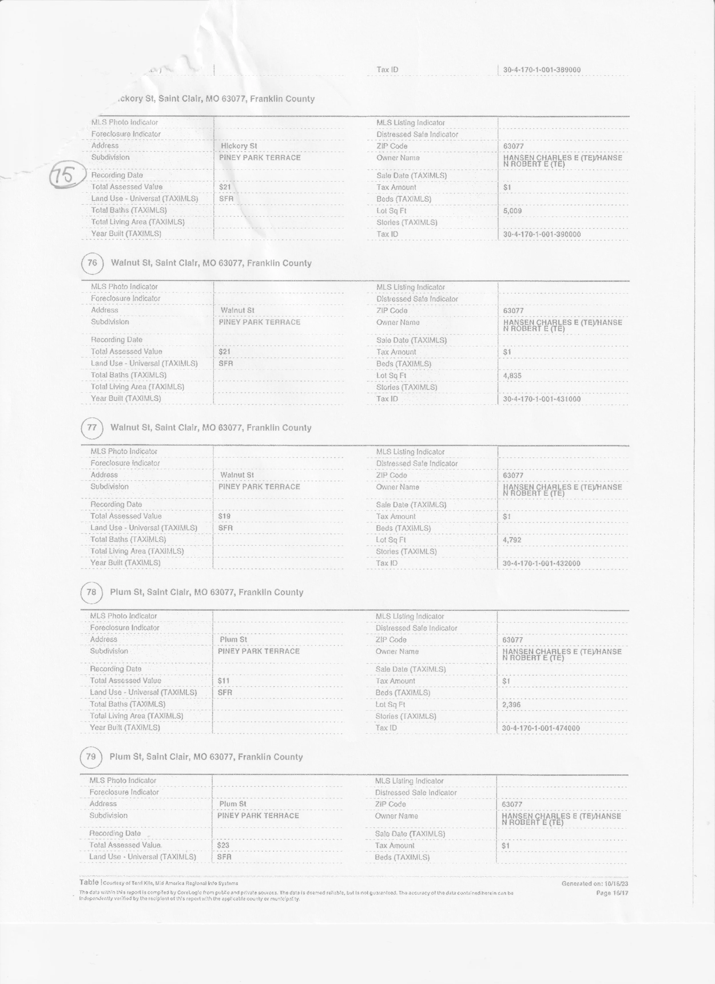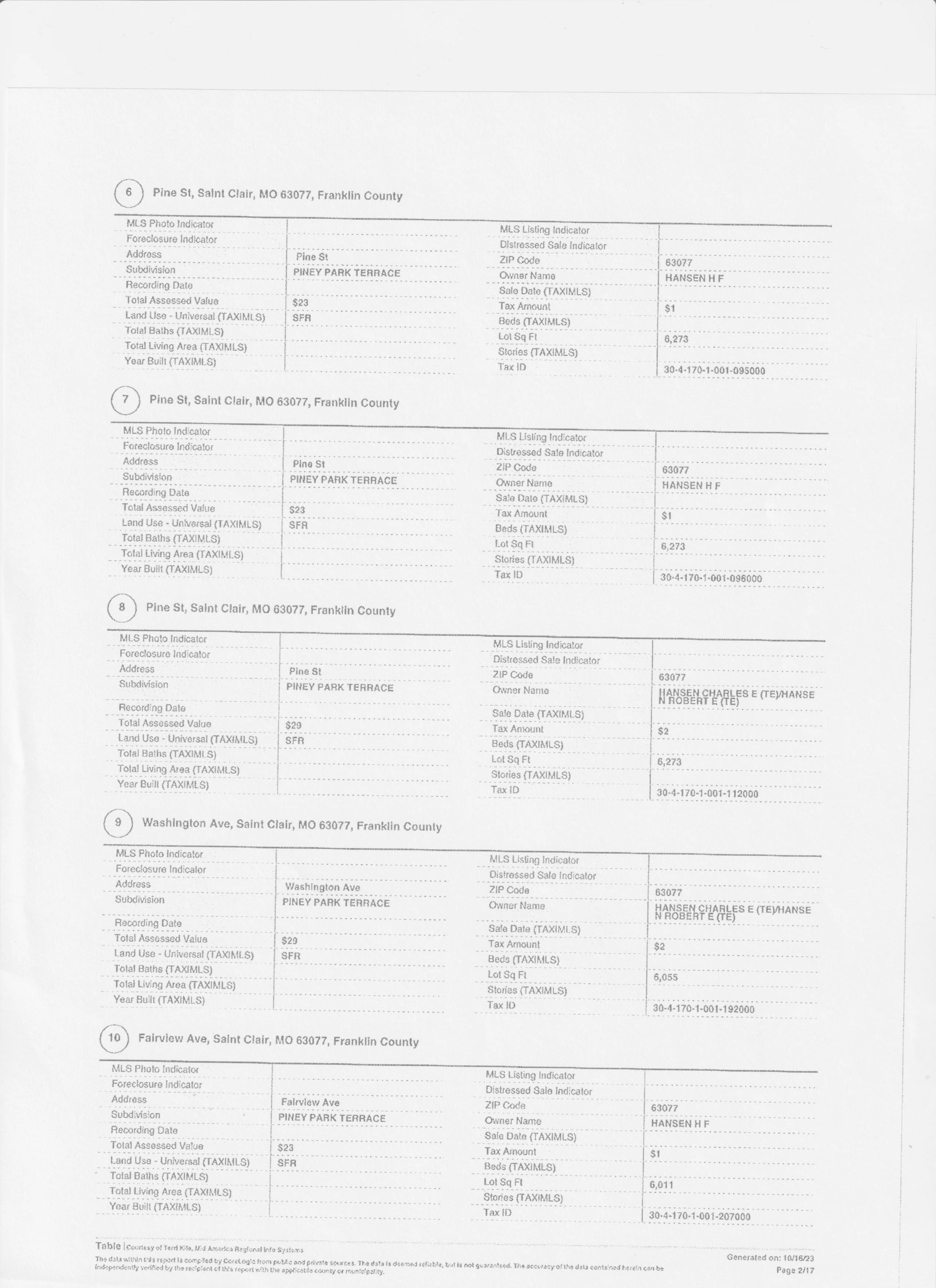 The Robert E Hansen Trust will sell 81 subdivision lots in Piney Park Terrace subdivsion by absolute auction.