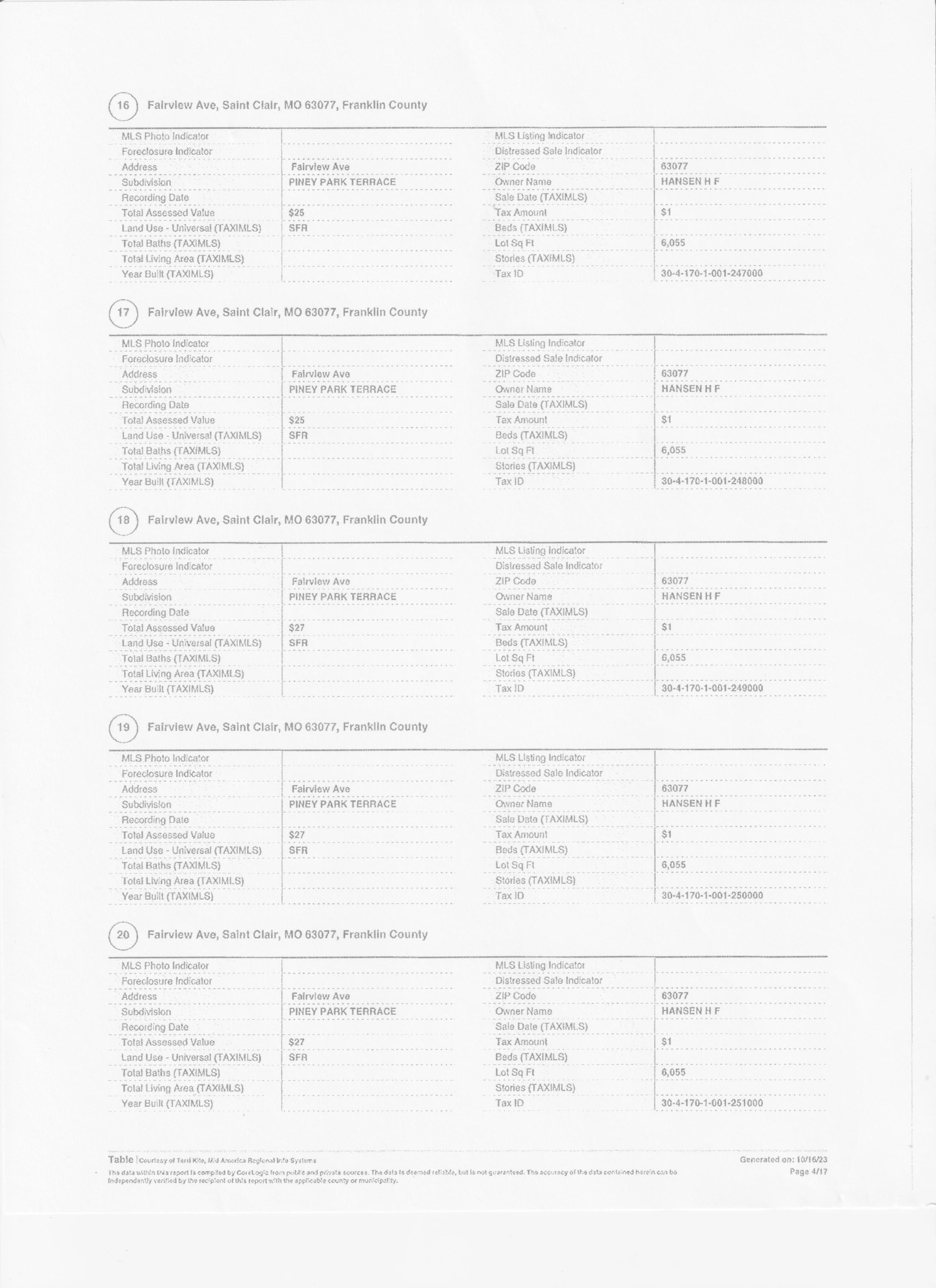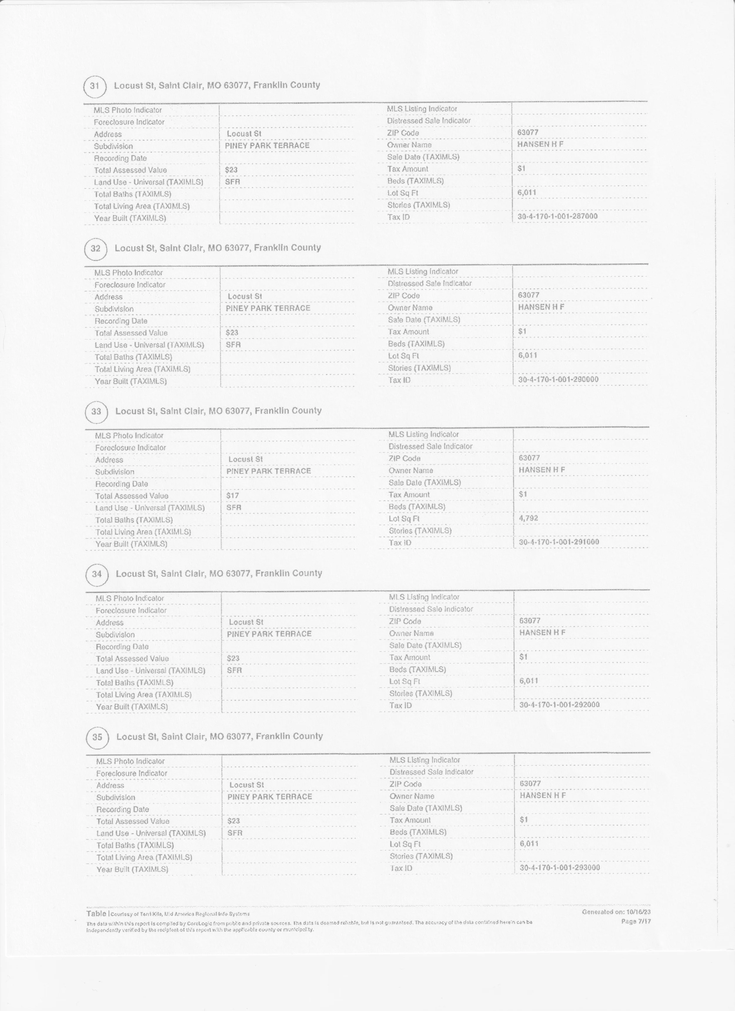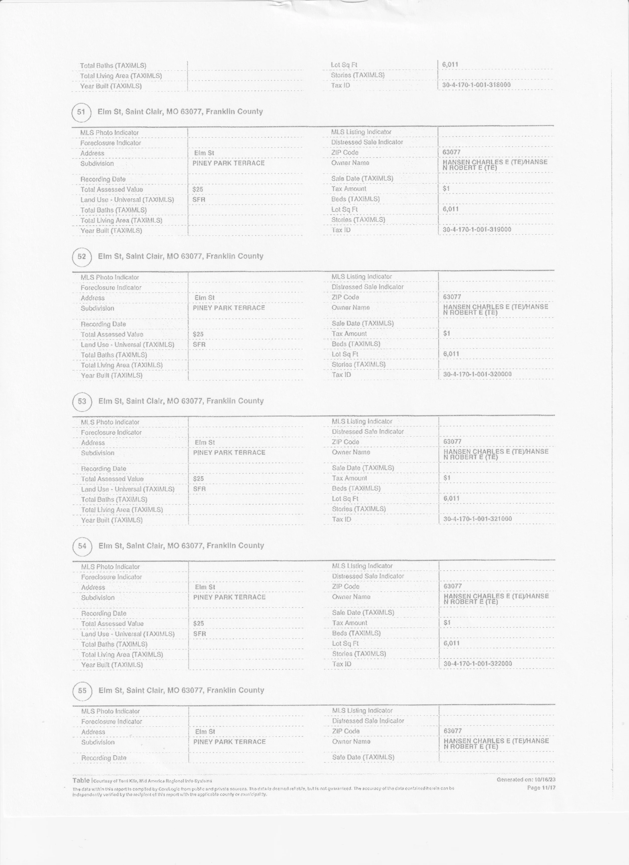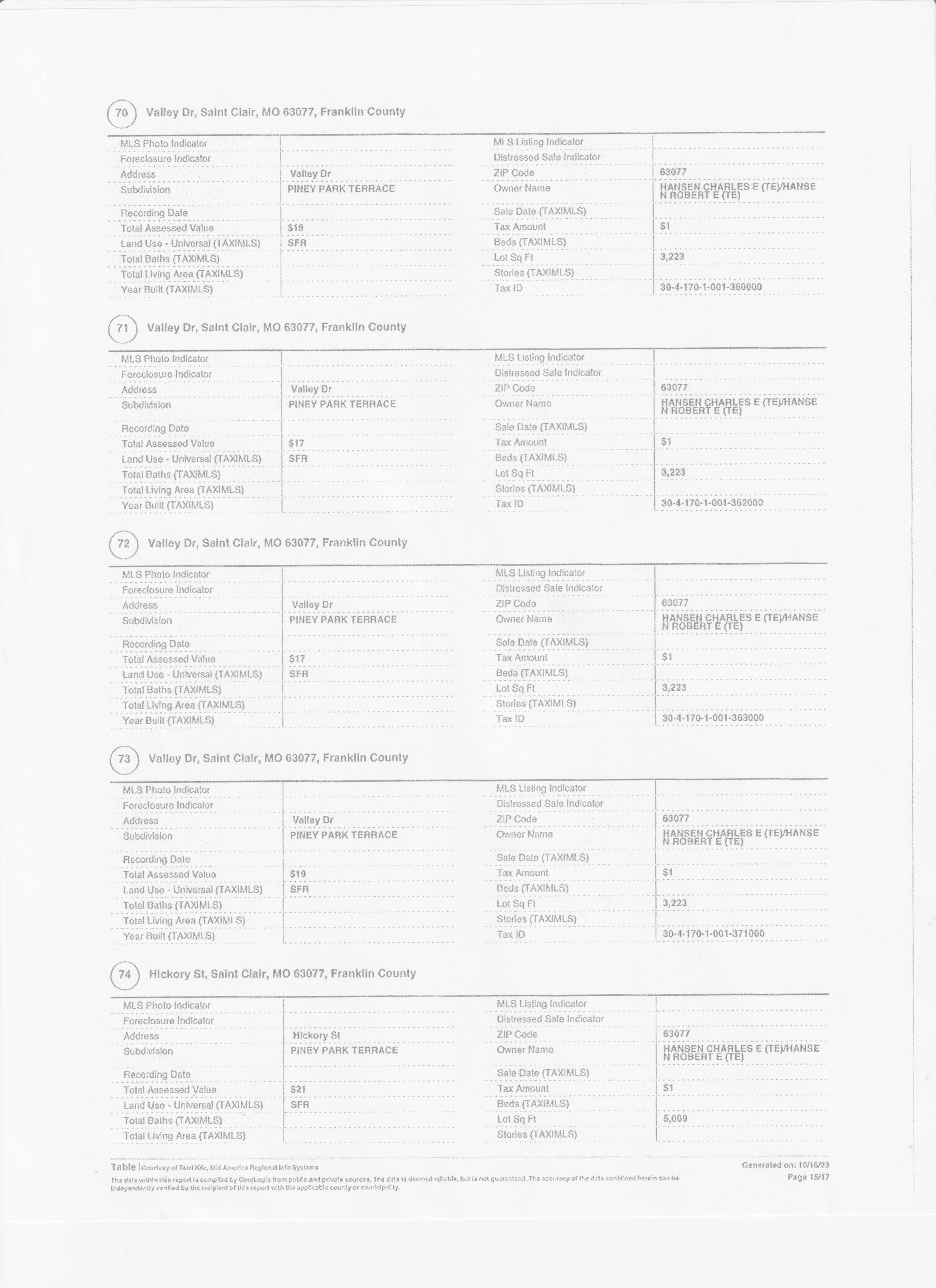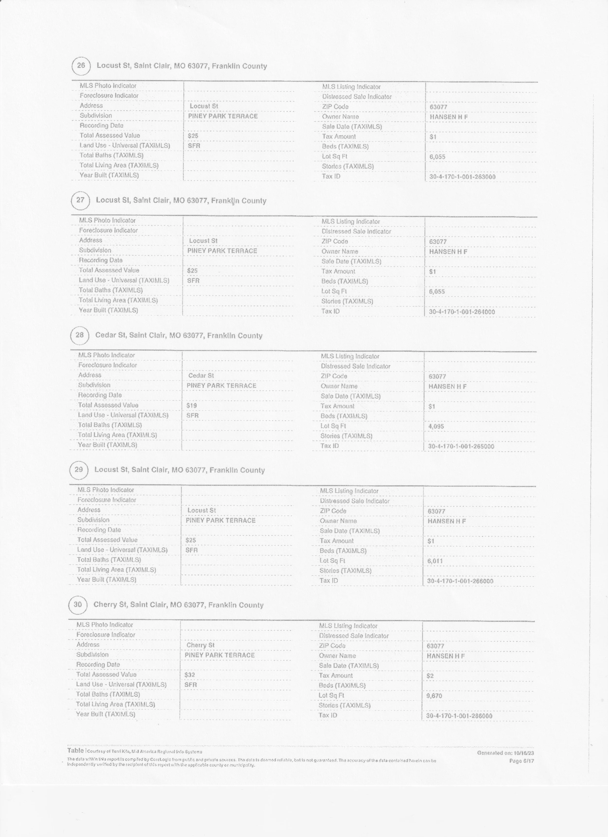 The Robert E Hansen Trust will sell 81 subdivision lots in Piney Park Terrace subdivsion by absolute auction.