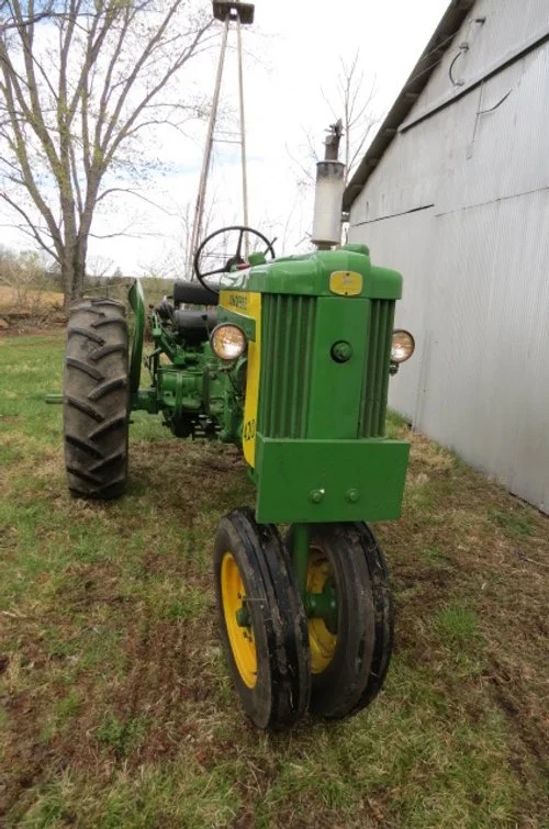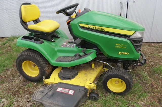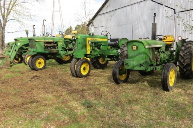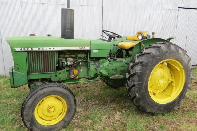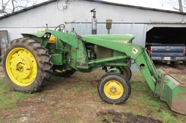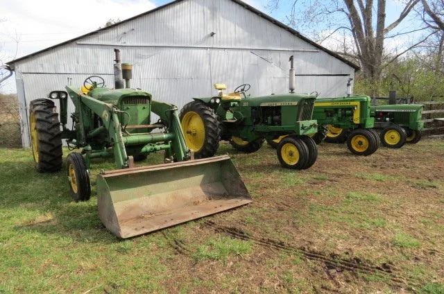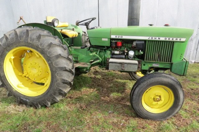 John Deere 3020 diesel tractor-wide front end-Serial #SNT113R082356R-new tires-148 loader QT 6’ bucket-bale spear-sells as unit, 7’ JD bucket, John Deere 820 diesel tractor-wide front end-3440 hours-new tires-Ser#111469CD, JD 2010 gas tractor-narrow front end-good tires-Ser#37080, JD 420 gas tractor-narrow front end-new tires-restored-Ser#127071, JD X380 KW riding mower-22 HP-54”-deck-188 hours,