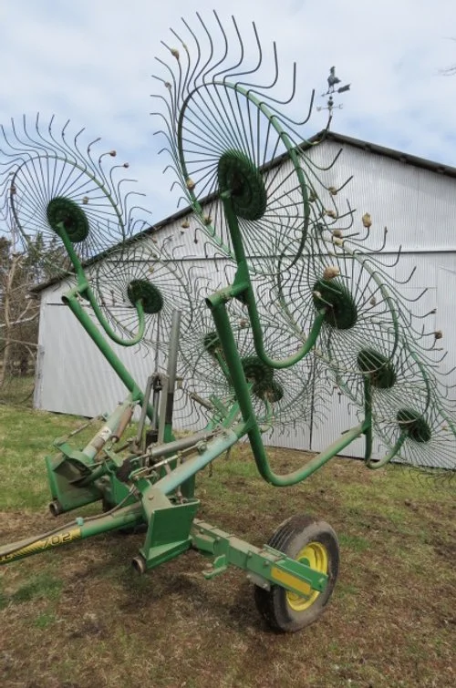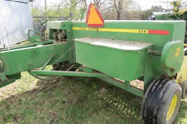 John Deere #457 round baler-4’x5’ bales-monitor-2550 bales-one owner, JD 336 square baler-one owner, JD 702 hydraulic lift 9 wheel V rake, Sitrey ST-520 4 basket tedder, JD 8’ wheel disc, Hesston 1006 8’ 3 point disc mower, New Holland 56 hay rake, Side Winder brush hog-3 pt-5’, Woods 3 pt 7’ brush hog, JD 2-14” bottom plow-3 pt, 3pt post hole digger, 3 pt grass seeder, 3 pt tractor wood splitter, 3 pt 2 row cultivator, (2) 3 pt bale spikes, JD #9 7’ sickle mower, JD 11 hole Van Brunt drill, JD 16’ hay wagon, 16’ hay wagon, 12 volt 20 ga sprayer, lot oak-cherry lumber,