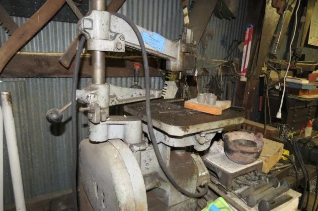 Footburt milling machine, Global DS milling machine, Delta drill press, Atlas Power King bandsaw, Delta Homecraft lathe, lathe knives, metal milling lathe, milling stock, drill press clamps, Mitutoya calipers-measuring gauges, machinist tool box full tools, milling bits, Craftsman machinist tool box, Delta Multiplex radial arm saw, heavy duty Delta molder, Belsaw planer, Wilton bench vise, Hobart Stickmate 160i welder, welding supplies, 20 ga 150 PSI upright compressor, ¾” socket set, Delta 14” cutoff saw, table saw, grinder on stand, pneumatic tools, table saw molding heads, cutting wheels, lot wooden parts drawer cabinets, hammers, drill bits, hand miter saw, shop vac, bench vises, hand saws, squares, bench top belt sander, bolt cutters, pipe wrenches, crescent wrenches, lot open-box end wrenches, all types hardware, motor belts, parts, gear pullers, C clamps, pipe clamps, circular saw, sanders, ½” drill, scroll saw, Milwaukee Sawzall, vise grips, sockets-ratchets, tool boxes,6’ level, stock rollers, portable compressor, work tables-benches, stools, VINTAGE TOOLS; Spur auger bits in 3 level wooden box-1890, tap & die set wooden box, blacksmith forge, anvil, 2 man saws, blacksmith drill, adze, buck saw, hand scythes, large crosscut saw, lead pot-burner, grinding wheel on stand, hand crank drill, wooden clamps, draw knives, old wrenches, lot wood planes-molding planes, beam scale, wooden pulleys, chain hoist, large saw blades, brush scythe, OUTDOOR TOOLS; Stihl MS251C chainsaw, Stihl MS180C chainsaw, Stihl HT 56C pole saw, Stihl HSA56 hedge trimmer, Stihl gas blower, McCulloch Mite E Lite generator, sledge, chains, double axes, car creeper, bottle jacks, sewer snake, paint sprayers, fluids-oils, chemicals, Yard Machine 2 cycle cultivator, electric hedge trimmer, pneumatic grease bucket, floor jack, lot hatchets, shovels, rakes, pitch fork, potato fork, pry bars, grub hoes, 5 HP tiller, gas cans, metal gas cans, shoulder nseeder, battery charger, sileage fork, come-a-long, tractor umbrella, warehouse dolly,