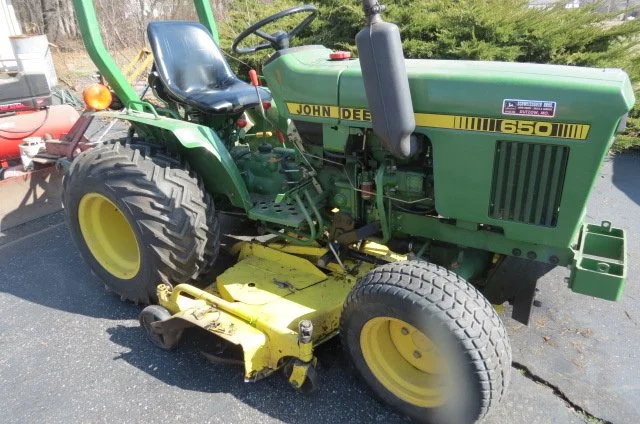 2003 F250 Super Duty diesel pick up-7.3 Power Stroke V8-Turbo Diesel-extended cab-4x4-8’ bed-new tires and batteries, John Deere 650 diesel tractor-roll bar-60” belly mower-3 point hitch-turf tires-front wheel assist-1731 hours, tandem axle trailer, 6’ 3 point road blade, 3 point carryall,