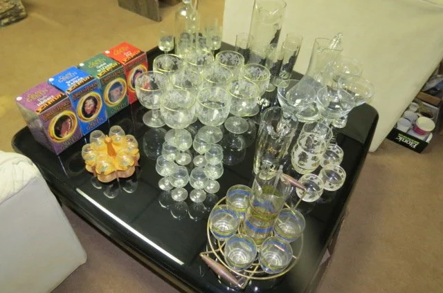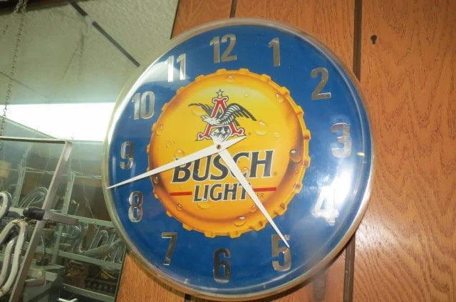 Butcher block table, Beer lights-Falstaff-Coors Light-“Lite” neon-Olympia-Schlitz wall plaque, Busch Light clock, beer mirror, Coca Cola cooler w/opener, nice ornate bar back-beveled mirrors-shelves, Jim Beam STL decanter, lots nice barware-drinking glass sets, martini mixer-glasses, wine decanters-glasses, pilsner glasses, mugs, cordial glass sets, Lord of Rings goblet set, tea pots, figurines, collector plates, wooden barrel, lawn jockey, cookie jar, chalk pcs, souvenir spoons, nice china dish sets, McDonald Cardinals glasses, Coca Cola Santa mugs, brass Coke bottle, iron horse bank, First Day Issue stamp collection, Cardinals newspapers, Civil War books, signed Presidential photos, galvanized radiator can, Currier & Ives print, cow bell, pr hub caps, oil lamps, Readers Digest globe, tins, old cameras, punch bowl, planters, albums, ship art, collection owls, PIANO; Steinway #40 piano and bench,