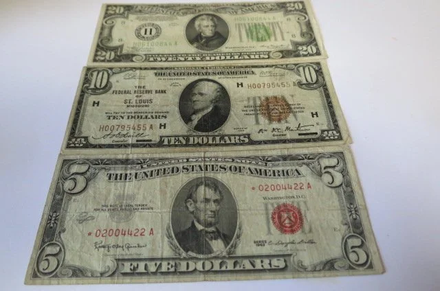 MORGAN DOLLARS; (16) 1921, (27) 1878-1904 Morgans, (15) peace dollars- including 1928s-1935, (75) Barber half dollars, lot Walking Liberty, Franklins, Kennedy 90%-40%, (60) Barber quarters, few standing Liberty, lot Washington from 30’s-60’s, (25) Barber dimes, lot Mercury, Roosevelt silver dimes, Liberty V nickels, Buffalo, silver nickels, Indian head cents-1862-few others, lot wheat cents, steel cents, TYPE COINS; 1858 half dimes, 2 cent pc, seated dimes, 1875cc seated half, 1855 w/arrow seated half, shield nickels, 1851 3 cent silver, 3 cent nickel, 1946 Booker T comm. half, modern commemorative silver dollars, 1991 silver Eagle, CURRENCY; large 1902 $5 National Currency note, 1923 silver cert., 1917 $1 large note, 1935-57 silver cert., POCKET WATCHES; Ingersoll Mickey Mouse, Waltham-Elgin-silver-gold cases, lot JEWELRY; costume, cameos,