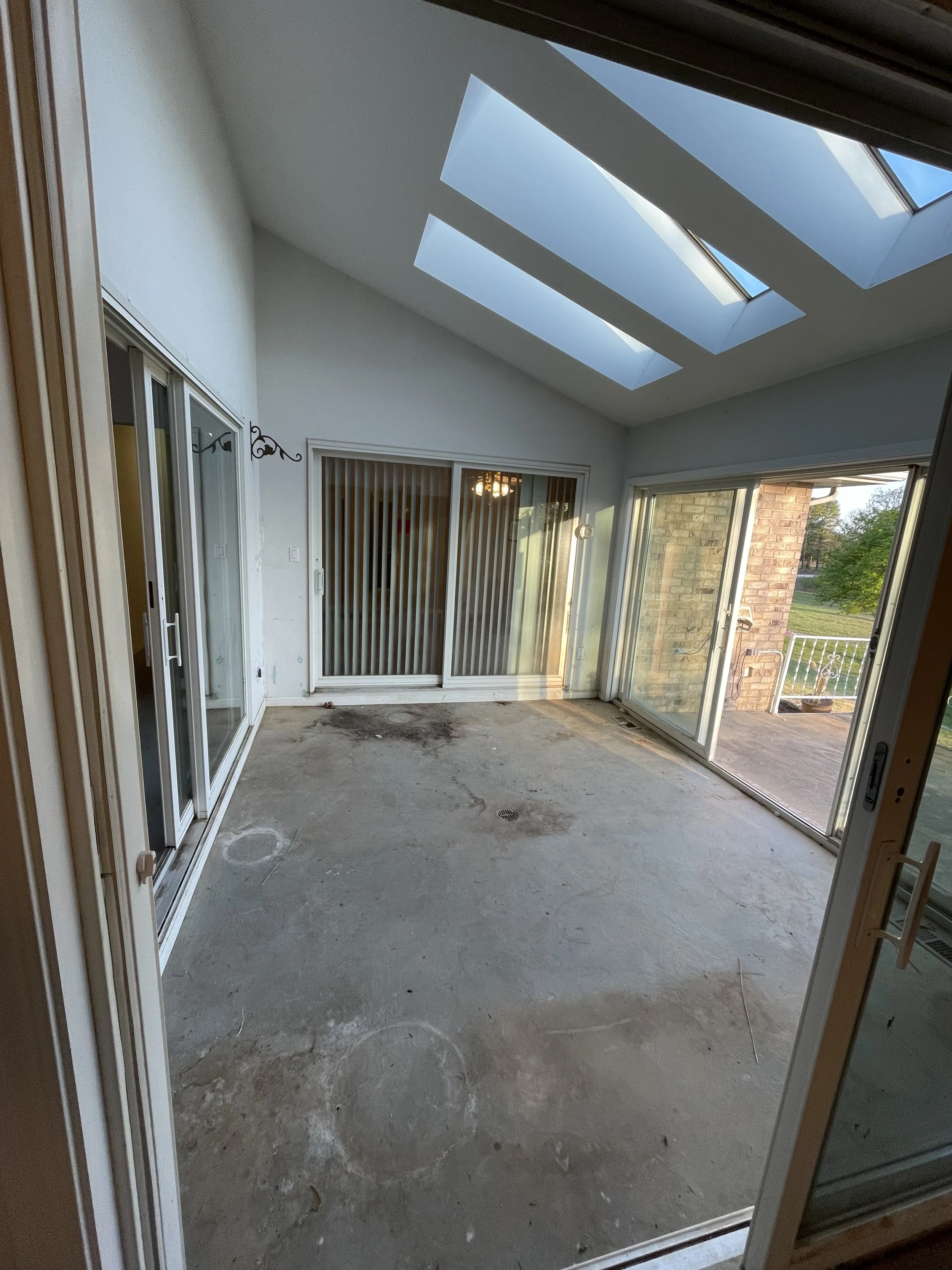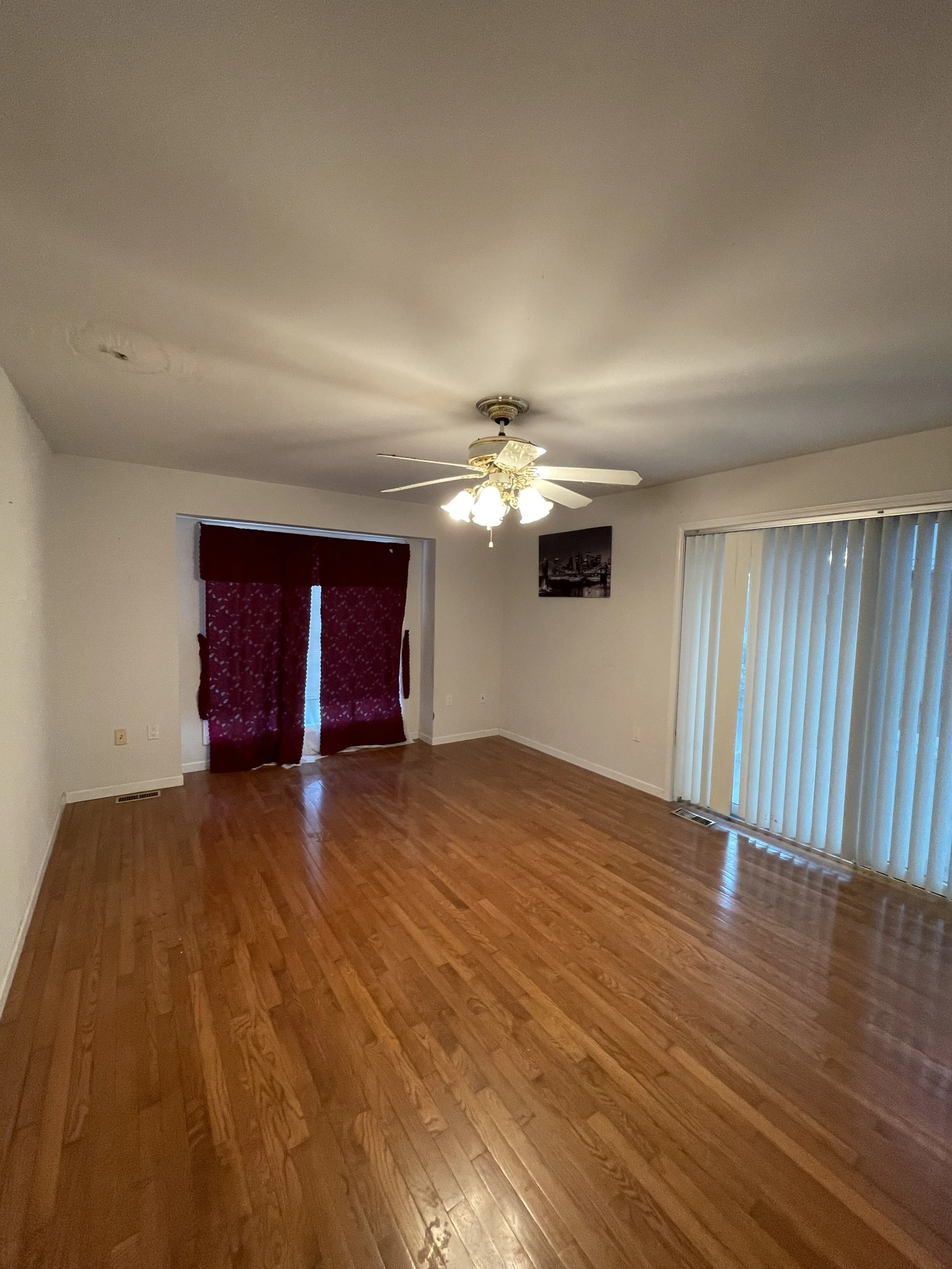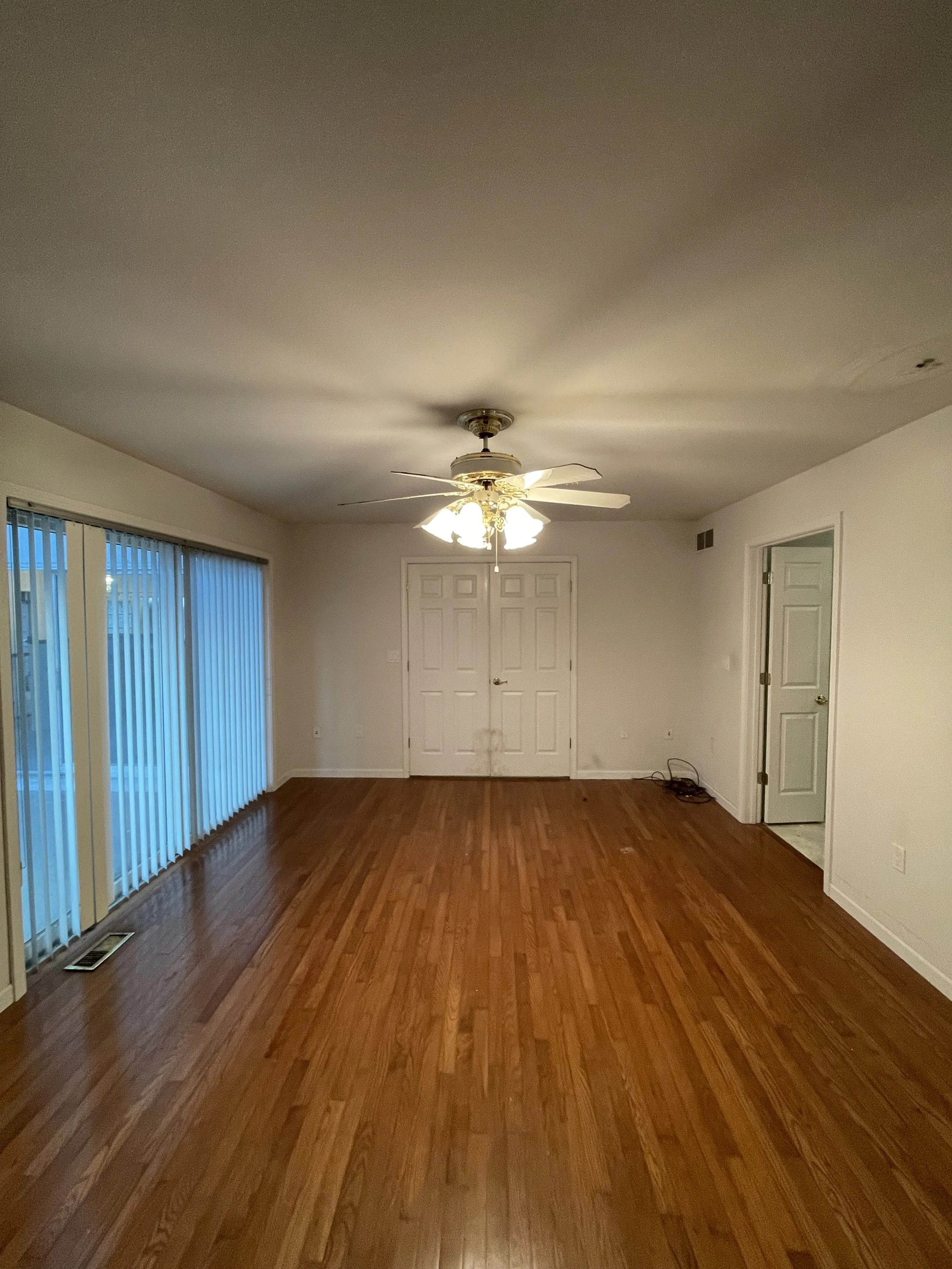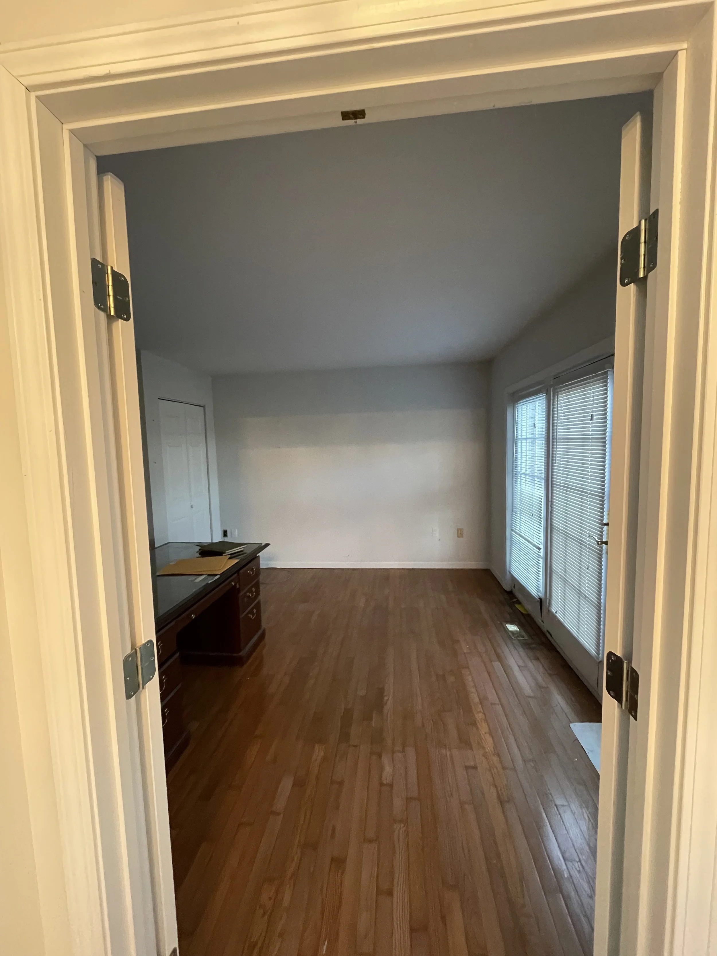 Master bedroom has hardwood floors and sliding door that opens to a beautiful sunroom and continues to a back patio.