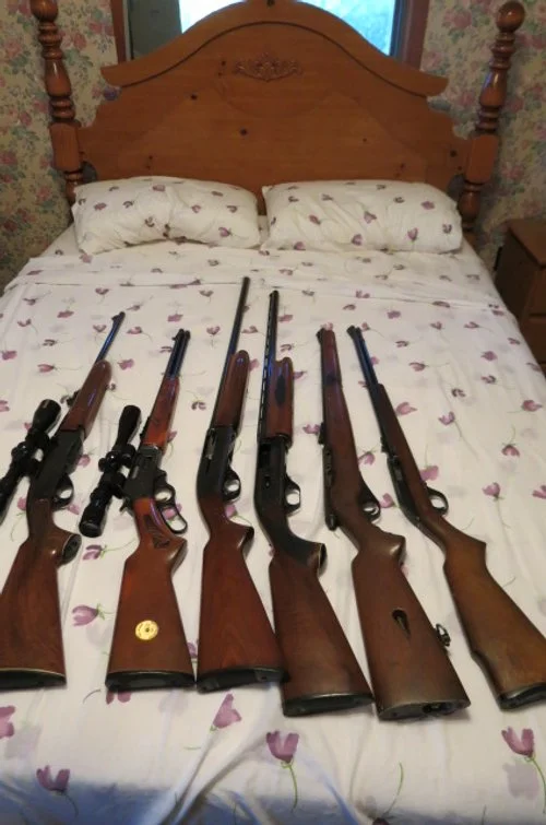 (2) Marlin Model 60 .22 LR, Mossberg .22 LR, Mossberg Model 51 12 gauge, Remington Model 30-06, Remington 12 gauge, Marlin Limited Edition 3081 30-30 lever action, Smith & Wesson .357 Magnum revolver, BOWS; PSC Marauder with arrows, PSC Nova w/arrows, scope 3-9x32 NIB, 7 boxes shotgun shells, deer rattler, 6 nice climbing deer stands, pop up canopy, camping chairs, pet carrier,