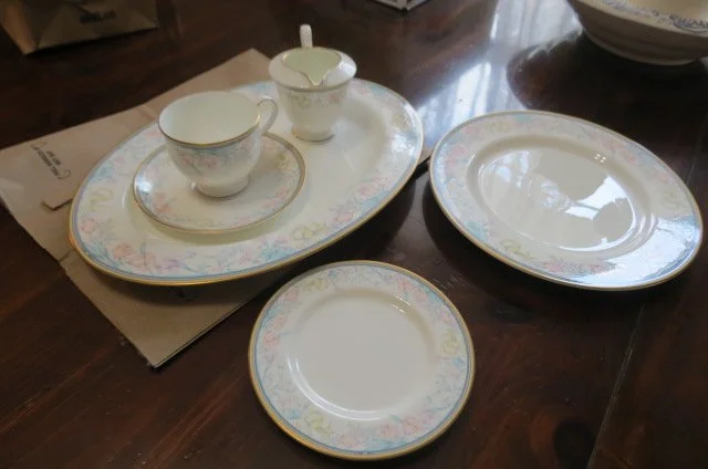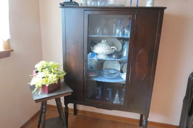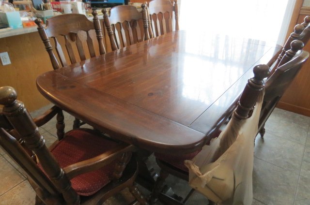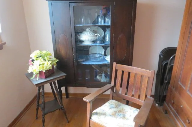 FURNITURE; mission oak rocker, china cabinet, plant table, sofa/loveseat set, pair end tables, coffee table, pine dining table-chairs, table lamps, gravity chair, dining table-chairs w/fabric seats, ladder back chair, dbl bed, stools, pair single beds-brass look, bedroom set, rocker, chest drawers, books, stereo, television, floral, vases, dehumidifier, hanging glass light, stackable stools, bedding, rolling wooden box, lot Holiday decorations-Christmas, wall hangings, artwork, wall mirrors, folding table, folding chairs, table linens, playing cards, file cabinet, KITCHEN; Mikisa 12 piece china dish set, Melmac dishes, Correlle dishes, glass mixing bowls, cannisters, SS bowl set, slow cookers, counter electric skillet, pots, pans, skillets, cooking dishes, glasses, mugs, utensils, punch bowl, trivets, flatware, waffle maker, canning jars, apple peeler, counter fryer, stoneware dishes, cook books, turkey platter, soup tureen, carving sets, granite roasters-canner pots, cake pans, lot Tupperware, APPLIANCES; washer/dryer, refrigerator, chest freezer, Roomba, Prolux Electrolux vacuum, flat TV, SR; 4 wheel walker w/seat, wheelchair, canes, rolling serving table, exercise bike, weights, YARD; lawn chairs, patio table-chairs, gas grill, charcoal grill, yard